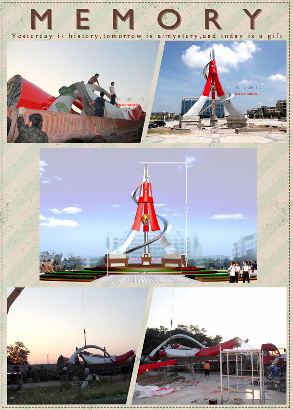 2013-6-10安放:安徽國際高業職業技術學院,不銹鋼雕塑,總高16米