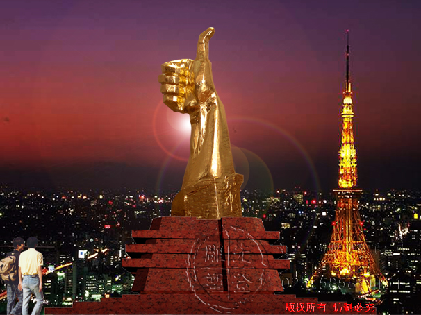 這個大拇指已被客戶分別預(yù)定定制材料分別為玻璃鋼、貼金箔、鑄銅成品。